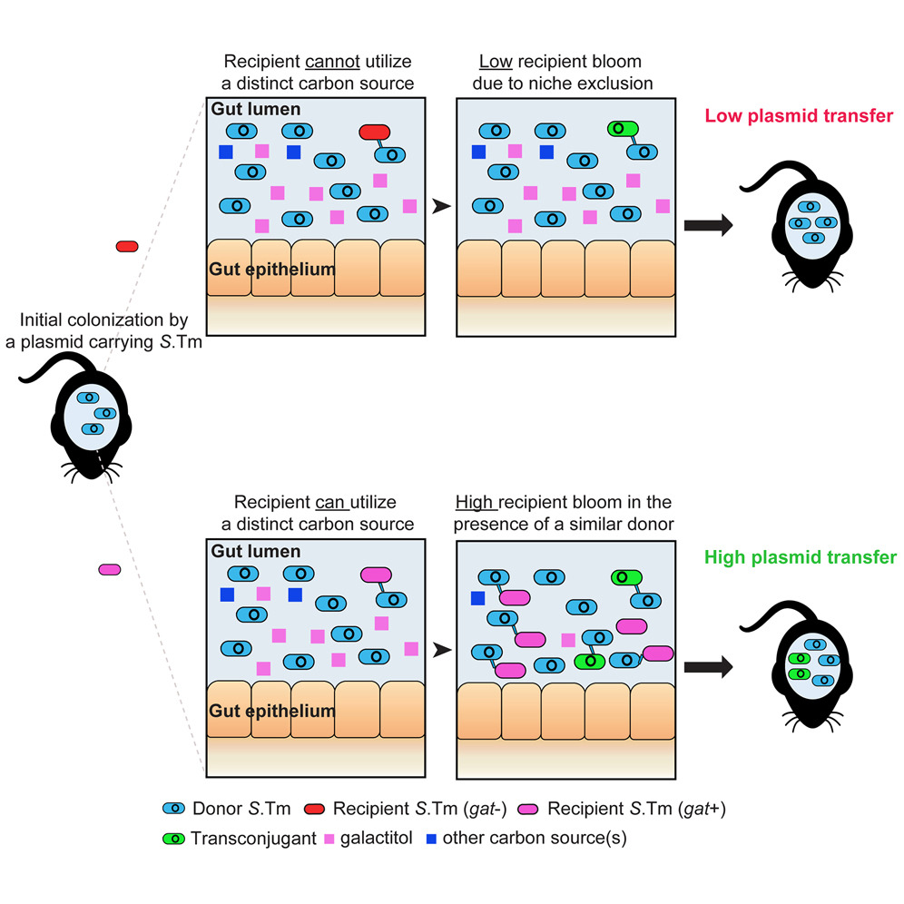 Gül E, Younes AA, Huuskonen J, Diawara C, Nguyen BD, Maurer L, Bakkeren E, Hardt WD. Differences in carbon metabolic capacity fuel co-existence and plasmid transfer between Salmonella strains in the mouse gut. 2023. Cell Host Microbe.